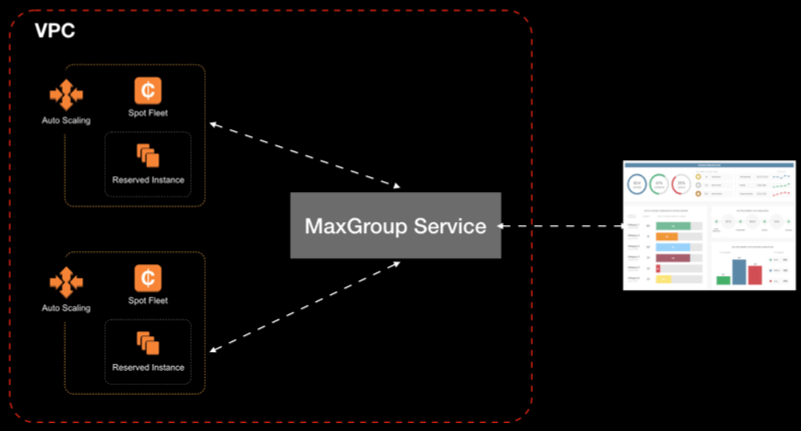 MaxGroup通过对现有服务集群的运⾏状态及业务特性生成集群优化方案,并实现有集群的透明迁移。在服务运⾏期间MaxGroup将提供持续的集群机型优化及动态管理理,包含了对于Spot回收中断的应对及多机种集群的智能负载均衡。